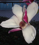 家を出るのが何時もより30分ほど遅れたので、今朝は吾妻橋まで南下、次いでテラス伝いに白鬚橋まで北上しました。今日は曇り空なので、ご来光こそ拝めませんでしたが、桜橋辺りまで来るとすっかり明るくなりました。白鬚橋への昇降口手前で木蓮が見事な花をつけていました。思わず、カメラを向けましたが、逆光気味でうまく撮れません。それでも、何枚かの写真をデジカメに収めました。