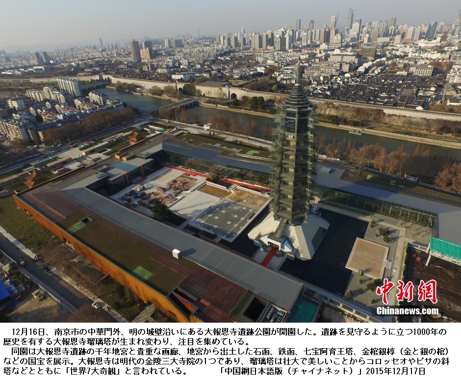 「金陵大報恩寺の瑠璃塔」は、明代、清(1644~1912年)代に南京が最も栄えた当時のシンボル的な建築物で、万里の長城と並んで中国を代表しているといわれるだけでなく、エジプトのピラミッドなどと並んで世界7大奇観の1つと称されています。