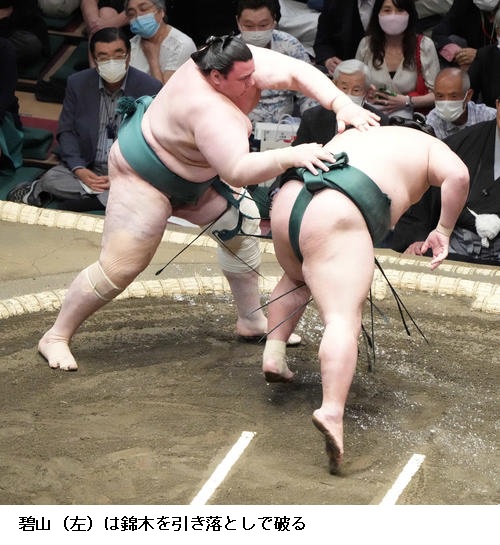 小結・大栄翔は横綱・照ノ富士に2場所続けて勝ち「先場所は立ち合いがダメだったが、今場所は立ち合いがよかった。思い切り当たっていこうと自分の相撲を取っているだけだが、勝てたのはうれしい」と振り返りました。また母の日の8日を横綱への白星で飾ったことについて「感謝を示そうと母には花を贈りました。いろいろな花が入ってるものです。そういう意味で、きょうの白星はよかった」と話していました。