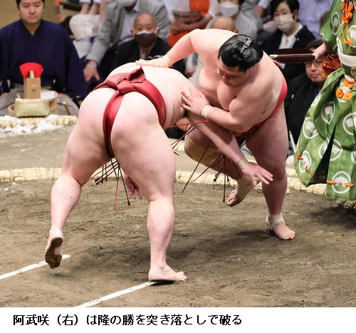 ▽阿武咲に隆の勝は阿武咲が「突き落とし」。