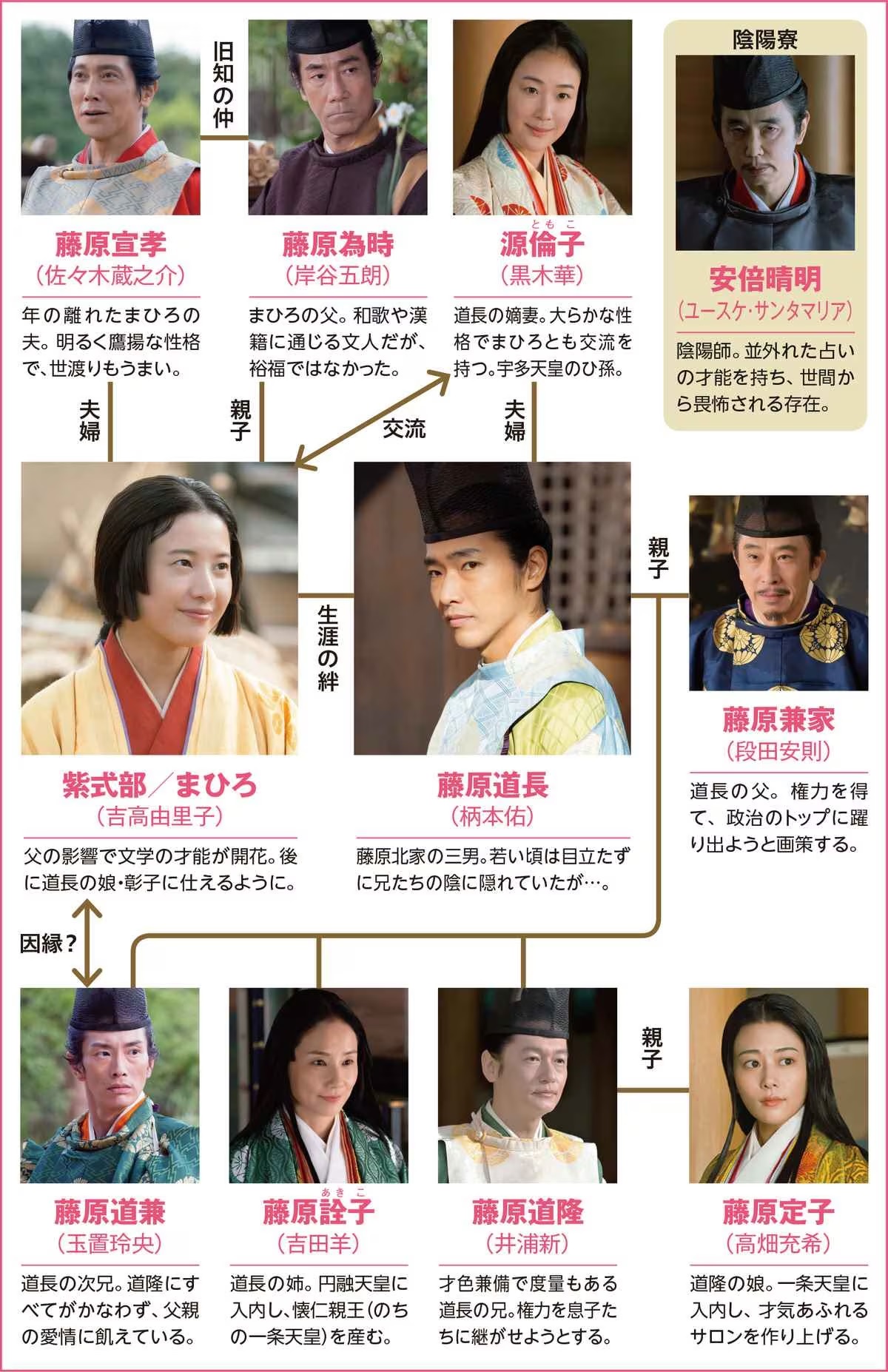 大河ドラマ「光る君へ」人物相関図 吉高由里子主演で紫式部の生涯描く平安絵巻、7日スタート ―― 第63作となるNHK大河ドラマ「光る君へ」の放送が7日(日)からスタートする。主人公は「源氏物語」を執筆した紫式部で、吉高由里子が演じる。教科書にも必ず掲載されている長編小説だが、作者である紫式部の詳細については史料がほとんど残っていない。本作では紫式部こと「まひろ」が、幼少期からの体験を通して「源氏物語」を書き上げていくドラマを構築。執筆をバックアップしたとされる藤原道長とは幼少期に出会い、生涯を通して絆を育む人物として描いている。有職故実を再現した、セットや衣装にも注目だ。