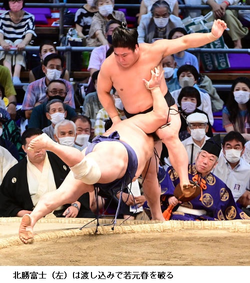 ▽若元春に北勝富士は、北勝富士が渡し込み。