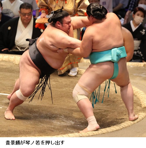 ▽大関 貴景勝に琴ノ若は貴景勝が押し出し。