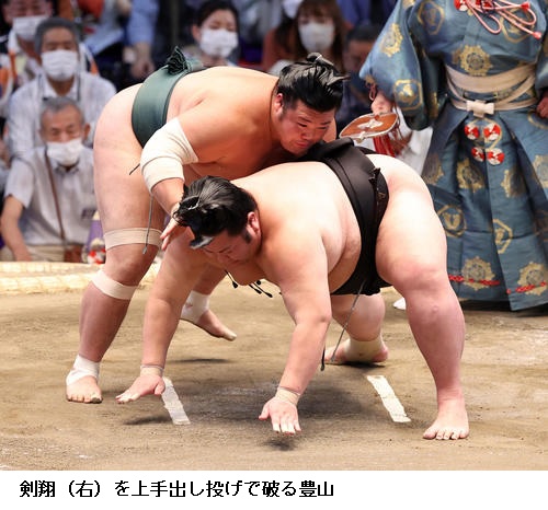 豊山は剣翔を破って3勝目を挙げて「本当は突き放したかったが立ち合いの前に相手の目が泳いでいたので何かしてくるのかと考え、まわしを取った。あわてないで対応できた」と落ち着いていました。