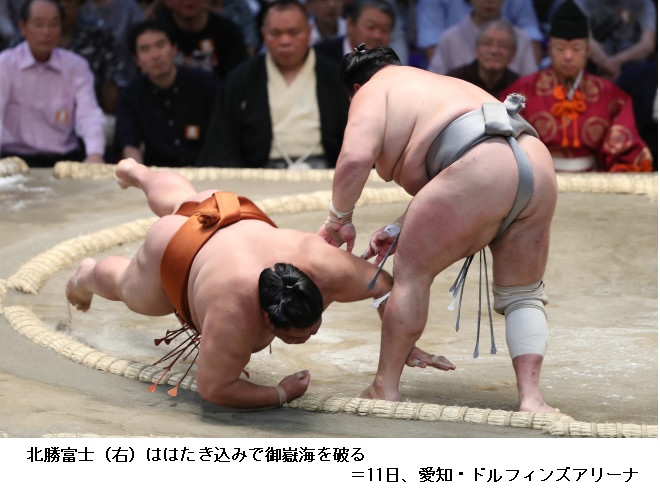 △御嶽海に北勝富士は北勝富士がはたき込み。