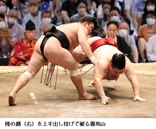霧馬山は、過去の対戦で0勝8敗と相性の悪い隆の勝に初めて勝って3勝目を挙げ「ずっと負けていたので、いつも勝てるようにこれからも頑張っていく」とうれしそうでした。