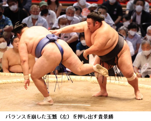 ▽大関 貴景勝に玉鷲は貴景勝が押し出し。