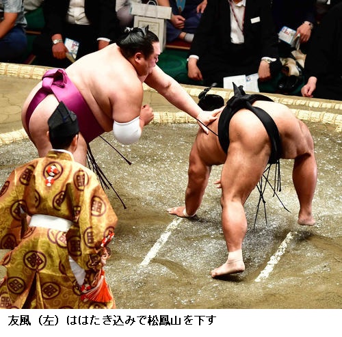 松鳳山に友風は、友風がはたき込み。