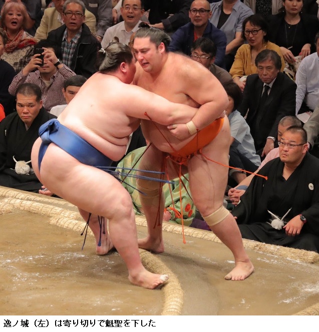 体重204キロの魁聖を寄り切った関脇・逸ノ城は「まわしはとれなかったが前に出た。相手は重いですけどそこまででした」と余裕の表情で話していました。
