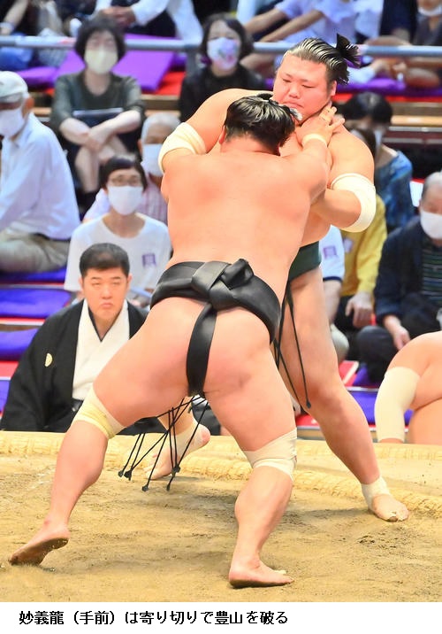 ▽豊山に妙義龍は妙義龍が押し出しで勝ちました。