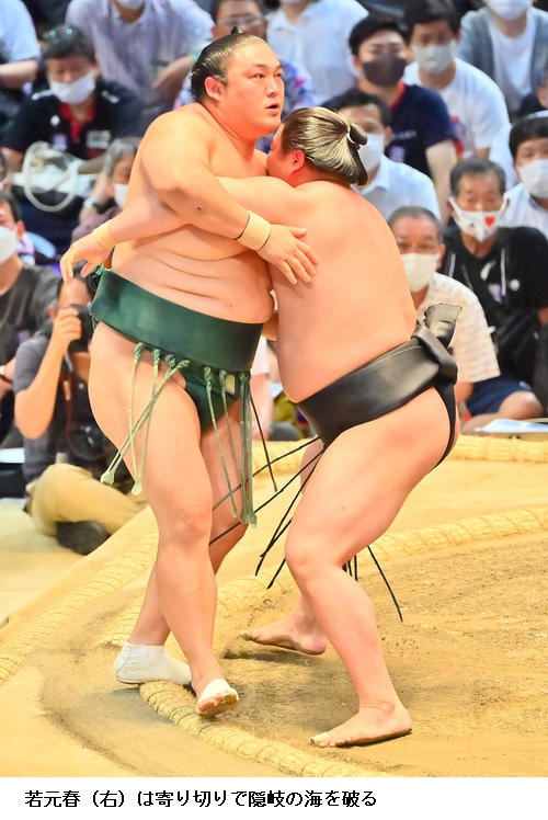 ▽隠岐の海に若元春は若元春が寄り切り。