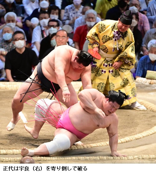 角番の大関 正代は宇良に勝って5連勝とし、「調子が上がってきているから初日からの連敗が痛い。もうちょっと内容を詰めることができた」と話しました。