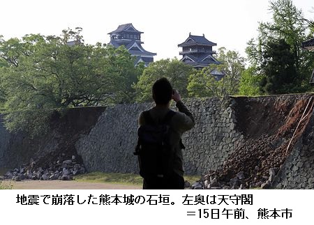 気象庁によると、15日午前0時3分には熊本県宇城市で震度6強の揺れを、午前1時53分ごろには同県山都町で震度5弱を観測。震度3以上の余震は40回以上に上っている。気象庁は約1週間、最大で震度6程度の余震が発生する可能性があるとして、警戒を呼び掛けた。同庁は、今回の地震を「平成28(2016)年熊本地震」と命名した。