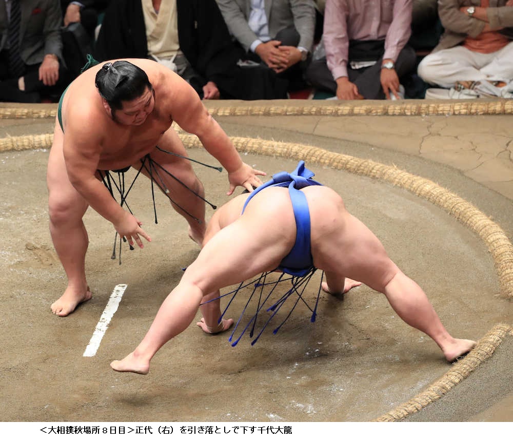 かど番の大関豪栄道は小結玉鷲を寄り切って1敗を守った。左膝負傷で休場中の大関照ノ富士は再出場しないことになり、来場所の関脇転落が決まった。関脇陣は嘉風が勝って御嶽海は負け、ともに4勝4敗。