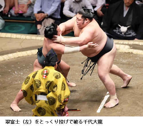 ▽翠富士に千代大龍は千代大龍がとっくり投げで初白星。