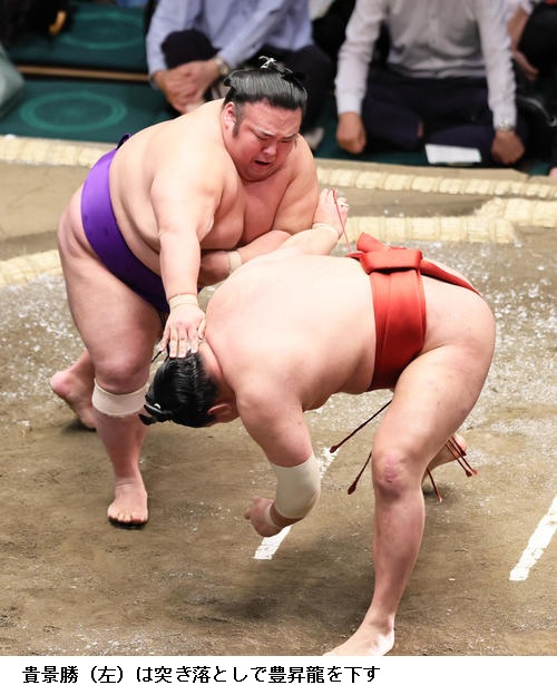 ▽大関 貴景勝に豊昇龍は貴景勝が突き落とし。