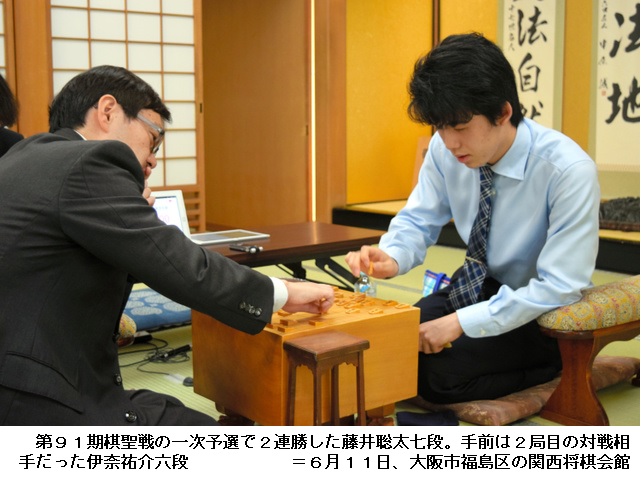 午後2時からの伊奈六段との対局は午後4時20分に終局し、先手番の藤井七段が95手で勝った。