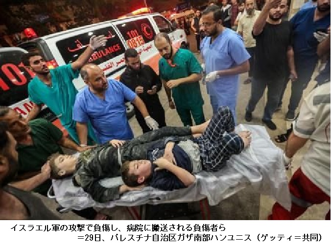 AP通信によると、ガザ北部のシファ病院近くの道路も29日未明に空爆を受けた。シファ病院はガザ最大級の医療機関で住民数万人が避難所として身を寄せる。イスラエルは、ハマスが同病院の地下に拠点を築いていると主張している。断絶していたガザの通信網は29日、復旧し始めた。