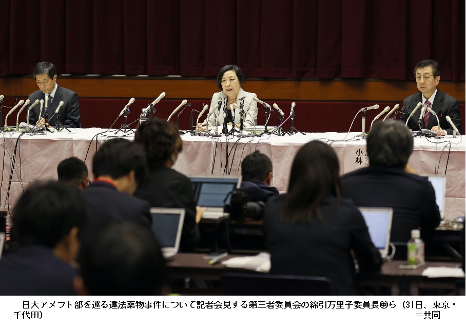 日大は前理事長が脱税事件で辞任後に組織改革を進めたが、第三者委の綿引万里子委員長は同日の記者会見で「複数の理事に就任してもらったのに理事会や監事に報告せず、ガバナンスが機能する機会を失った」と述べた。