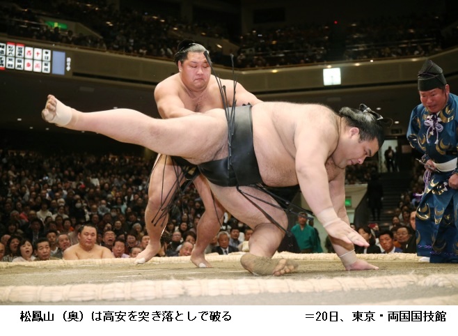 ▽松鳳山に琴奨菊は、松鳳山が寄り切り。