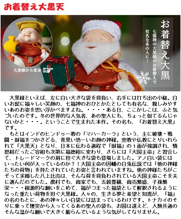 商品の絵柄の広告には、恵比寿や大黒天、七福神のサンタクロースも表れ、親しまれたと伝えられています。