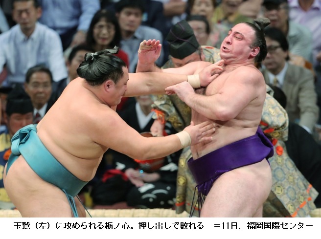 初のかど番で、右足親指のけがも抱えながら9勝した先場所と比べれば重圧は少ない。白鵬、鶴竜が休場しており、優勝の好機と言える場所で初日に痛い黒星を喫した。 (jiji.com 2018/11/11-19:22)
