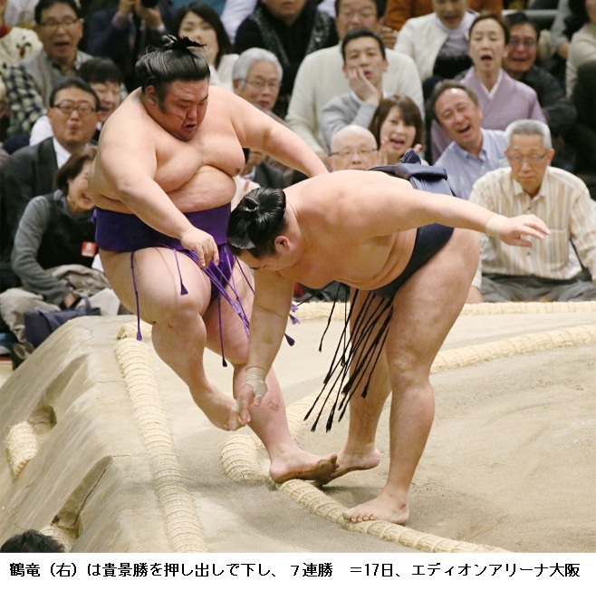物言いがついた際どい相撲を制し7連勝とした横綱・鶴竜は「よく見て落ち着いて相撲を取れた。こういう相撲をものにできているのがいいんじゃないかな」と余裕の表情でした。 (NHK NEWS WEB 3月17日 20時41分)