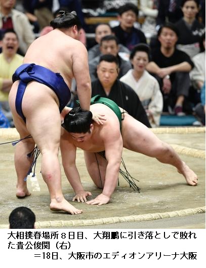 貴ノ岩、大きな勝ち越し=大相撲春場所 ―― 西十両12枚目の貴ノ岩が、元横綱日馬富士による傷害事件の被害から復帰した春場所の千秋楽で勝ち越しを決めた。臥牙丸の巨体を組み止めて寄り切り、「稽古して、今場所よりも準備ができたらいい。次の場所ですね」と先を見据えた。