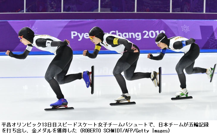 日本、チーム力で個に対抗=高木美、勝負どころで先導 ―― 【平昌時事】21日に行われたスピードスケートの女子団体追い抜き決勝で、高木美帆(日体大助手)、佐藤綾乃(高崎健康福祉大)、高木菜那(日本電産サンキョー)で臨んだ日本がオランダを破り、初の金メダルに輝いた。残り2周の時点でライバルに0秒45のリードを許す展開だったが、エースの高木美が先頭に立ってペースを上げ、一気に逆転した。