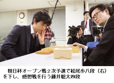 決勝で対戦した松尾八段は「(藤井四段が)強いことは知っていた。イメージ通り、びしびしと急所に来られた」と対局を振り返った。