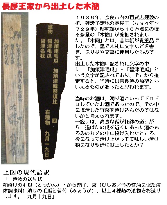 菓子類が少ない古代、甘くて美味しいマクワウリはさぞ子供たちの好物だったことでしょうが、正倉院文書によると極めて高価な贅沢品だったようです。奈良漬けに使われるシロウリも粕漬けとして貴族の食膳に供されていたことが長屋王の木簡の記録に見えます。