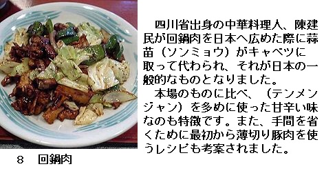 7 青梗菜 →チンゲンサイ 8 回鍋肉 →ホイコーロー