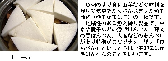 5 塩汁鍋 →しょっつるなべ 6 蒲鉾 →かまぼこ