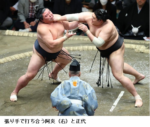 ▽阿炎に高安は、阿炎が押し出しで勝ちました。