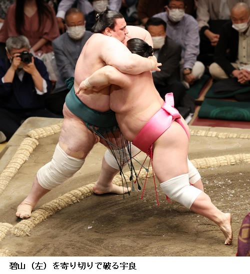 碧山は、琴恵光に勝って7勝目を挙げ「あまり変なことを考えず、とりあえず前に出ようと思っていた。勝ってよかったが、ここからまだまだ」と気を引き締めていました。