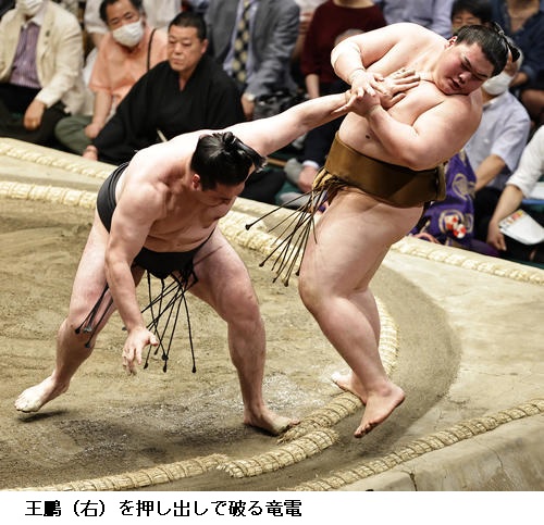 ★王鵬 当たって、距離を取られて、下に入られた。自分の自信のある形でいきたかったけど、うまくいかなかった。全然何もできなかった。(今場所は)上位の人たちと当たり、まだまだ足りないことがあると感じた。明日からまた頑張ります。