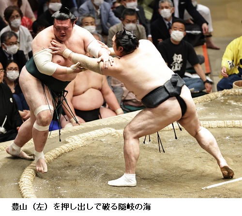 ▽琴恵光に隠岐の海は、隠岐の海が寄り倒し。