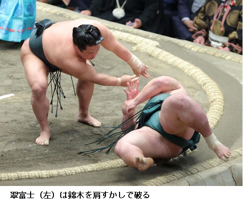 ▽翠富士に栃ノ心は翠富士が肩透かし。