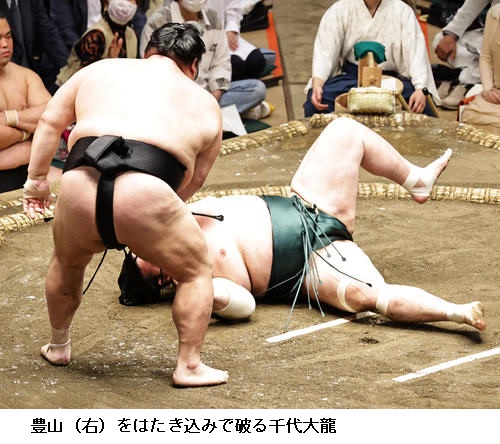 ▽豊山に千代大龍は千代大龍がはたき込み。