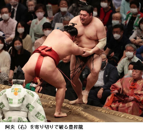 ▽豊昇龍に阿炎は、豊昇龍が寄り切り。
