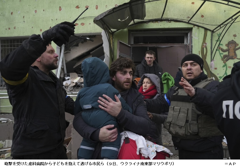 ロシアは住宅や病院に砲撃を続けている。連日設けられた「人道回廊」にも砲撃したり、地雷をしかけたりしてウクライナ西部への退避を阻んだ。ロシア軍が中心部まで15キロメートルに迫る首都キエフや北東部ハリコフでも、包囲へ態勢を整えているとみられる。