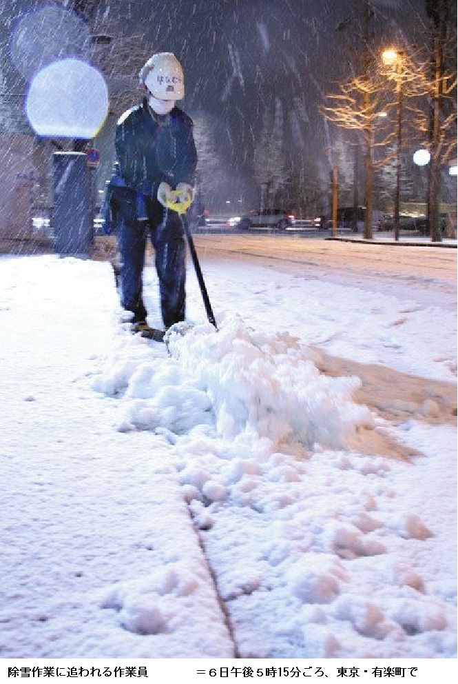 東京都心では6日午前10時半、予想より早く雪が降り始めた。気象庁は同11時前には大雪注意報を発表し、平地の予想降雪量と23区の積雪を5センチへさらに上方修正。都心の実際の積雪が5センチを超えた6日夕には、実況を追いかけるように大雪警報を発表した。