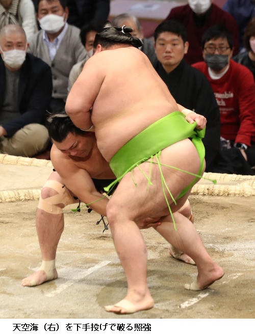 ▽照強に天空海は、照強が下手投げ。