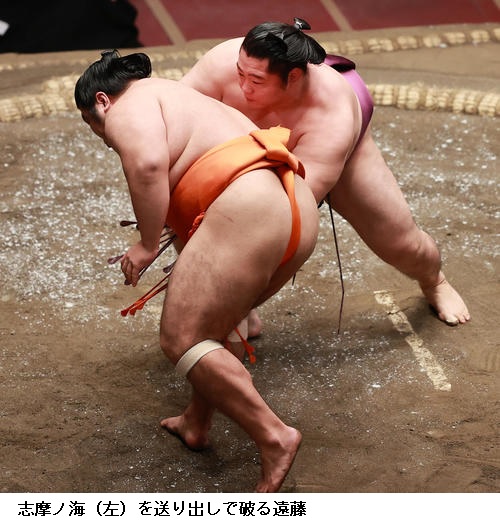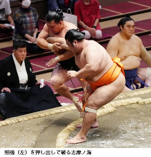 ▽志摩ノ海に照強は、志摩ノ海が押し出し。