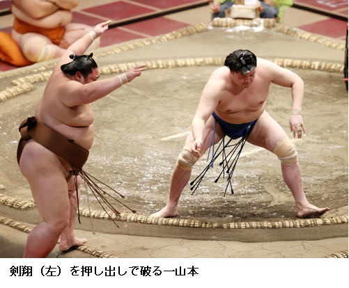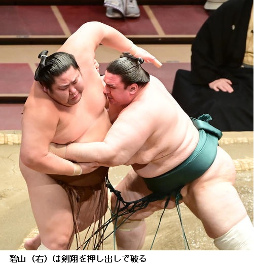 ▽碧山に剣翔は、碧山が押し出し。剣翔は負け越しました。