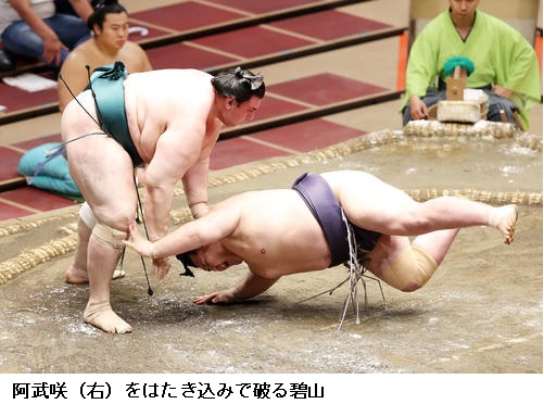 ▽千代大龍に碧山は、碧山が押し出しで初白星。