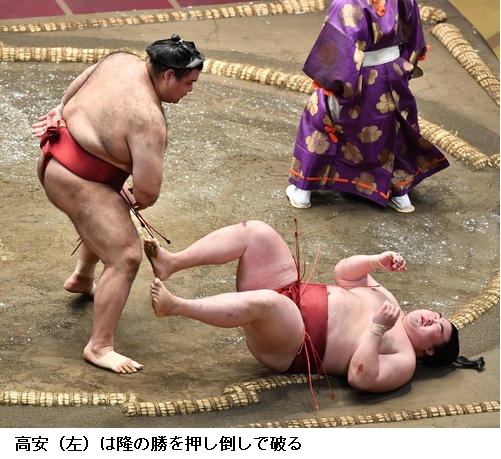 ▽小結 高安に関脇 御嶽海は、御嶽海が引き落とし。高安は4連敗です。