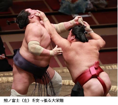 ▽千代大龍に大栄翔は、大栄翔が押し出しで勝ち越しました。
