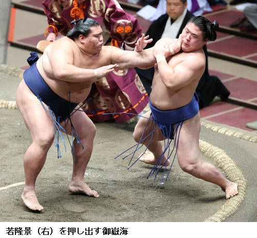 ▽若隆景に千代丸は、若隆景が寄り切り。