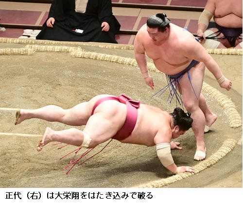 敗れた正代は「立ち合いはすごくよかったと思うが、詰めが課題だ。体もまだ動いているので思い切りいけたらいいかな」と話していました。